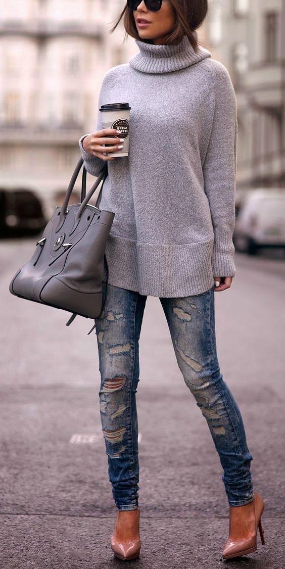 Chunky grey turtleneck sweater- This one is from Amazon. (similar here)