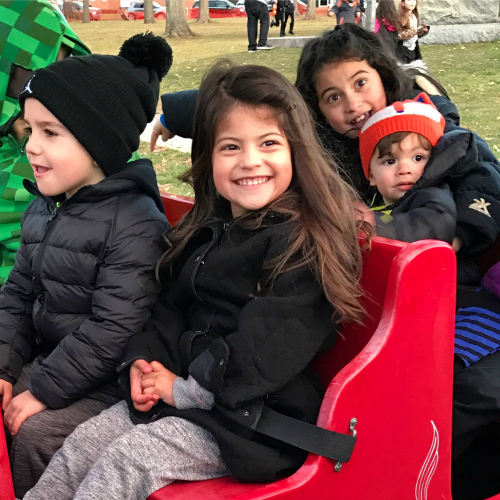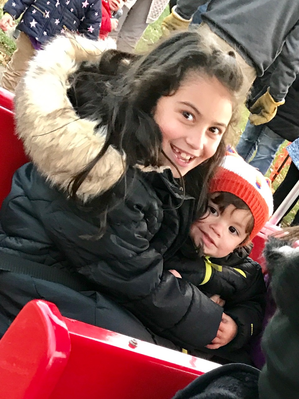 Saturday evening we met my cousin’s family on the town green for the tree lighting. There was a little train taking the kids around and it was the hit of the night.