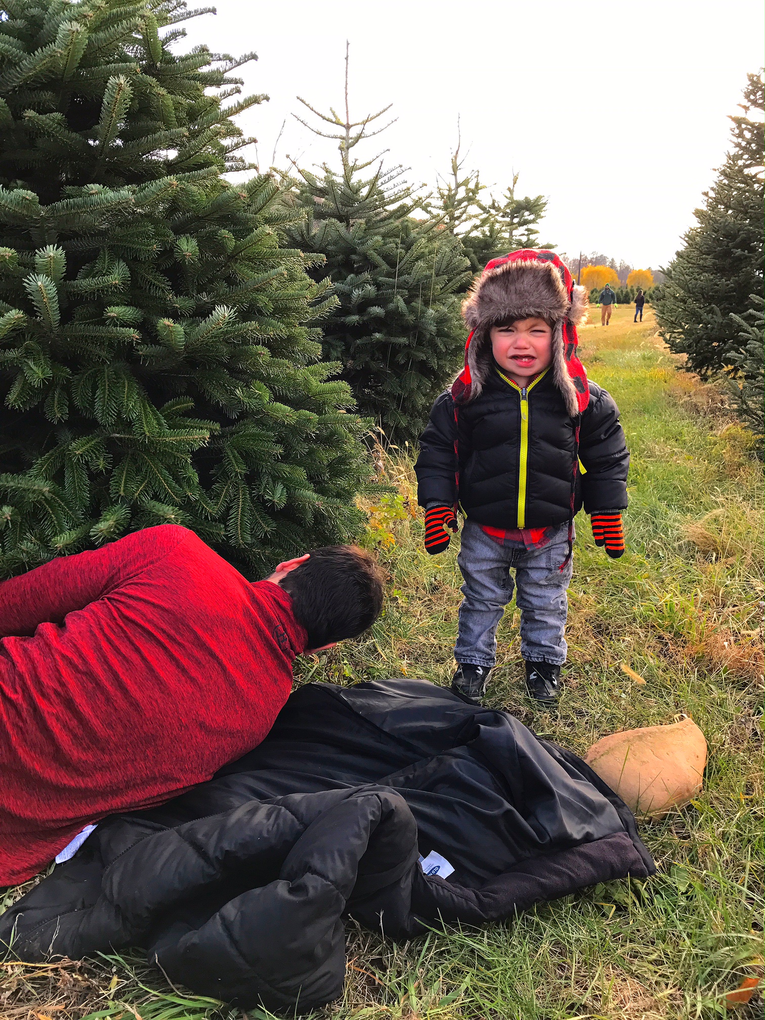 Dante was not as excited as everyone else about Daddy chopping down a tree.
