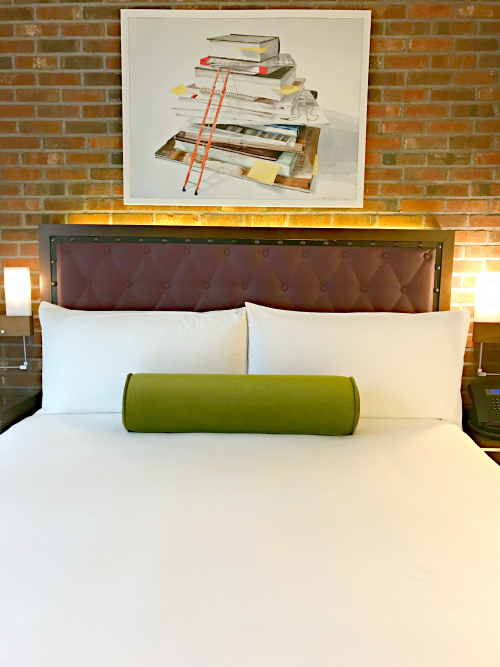 We were high on the fact that we were going to have a full night of uninterrupted sleep, so Archer could have thrown us in a closet with a cot and I would have been okay with it. I was not ready for the comfort level of this king sized bed. You guys know I’m a sucker for tufting and nail head trim, so this headboard was a yes (and that oversized artwork?!). I felt so spoiled when I found out that the hotel used Frette linens!