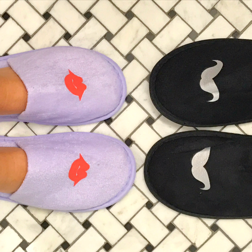 We had these adorable his & hers slippers in the room and were told to take them home with us (also free)! I mean, how cute are these?!