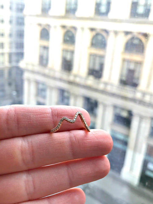 I met with David and Helena in their mid-town office. I was expecting a public jewelry store. I took the elevator to the 14th floor and walked into a creative atelier and workshop. You could feel his passion for the craft just by being there. (click here to read about how they work) I was warmly greeted then offered a beverage and a seat on the tufted nail head trimmed sofa by the edgy artwork casually leaning against the wall. David’s space was industrial yet somehow warm. He sat in one of my favorite Restoration Hardware chairs (I already like his style).