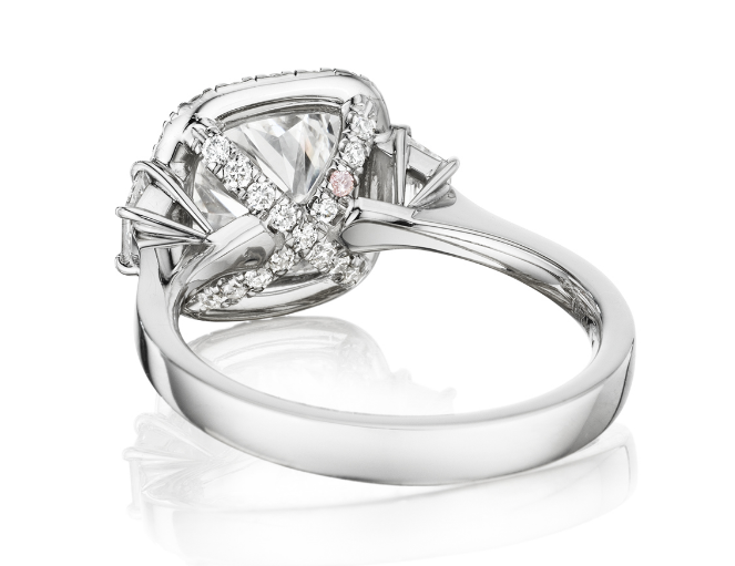 In his diamond pieces, one of his trademarks is that he “hides” a pink diamond (!!!) It was almost like a game as I tried on the many rings to find the pinky! Here’s a peek at one of the engagement ring he has created. To die for. (I spy the pink diamond, can you?)