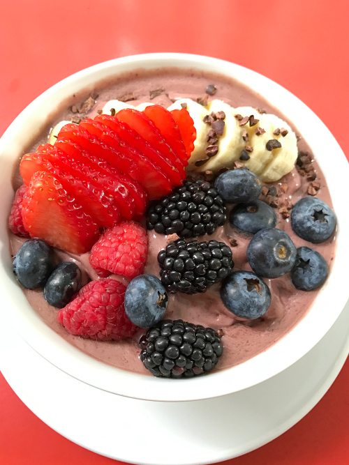 We stayed out late the night before at a NYWF kick off party, so we ordered an acai bowl to start our day with some super-food goodness to recharge our batteries a bit. This was -no lie, the best acai bowl I’ve ever eaten. The texture was cold, smooth and creamy. The bowl was loaded with one good thing after the next.