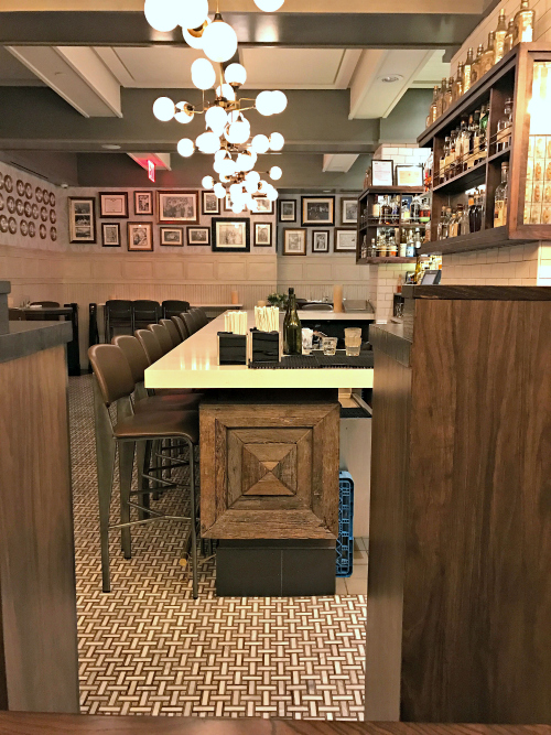 There are tables, seats at the bar, and private tufted banquette booths.