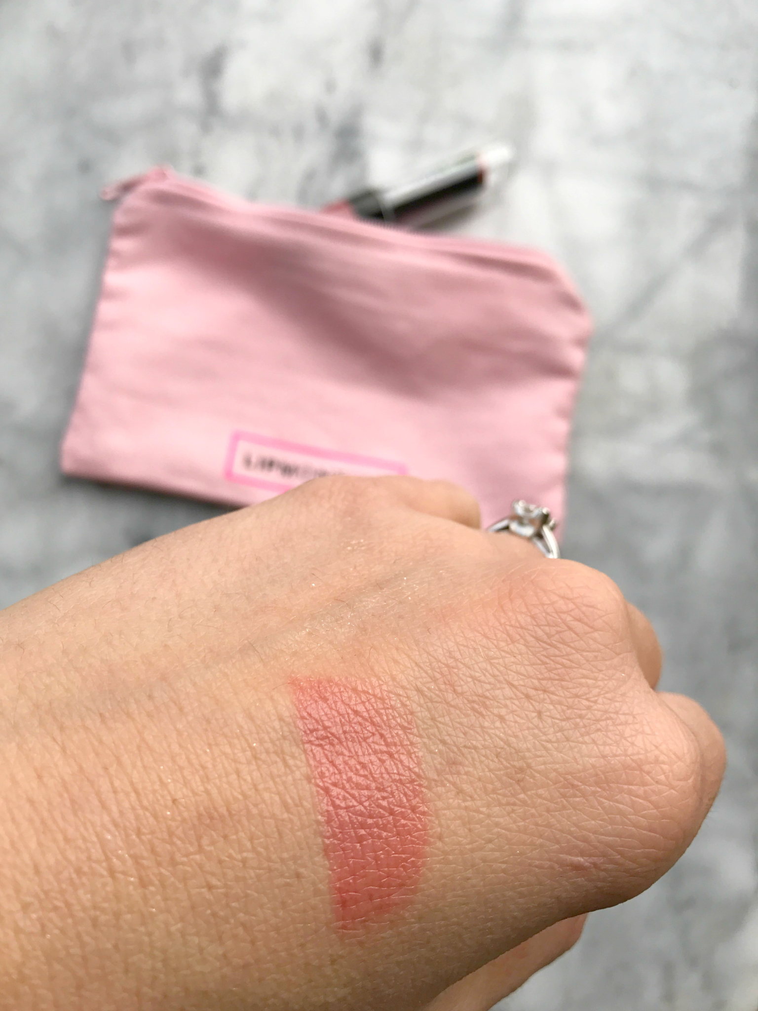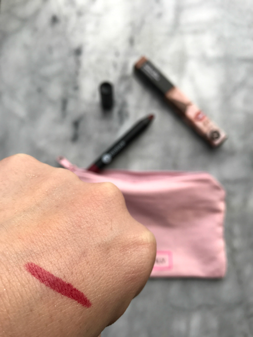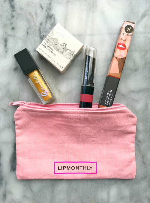 You do not get sample size like most makeup subscriptions! Each month you receive 4-5 full size products in an adorable makeup bag. They’re mostly lip products (lipstick, gloss, stains, crayons, etc) and the occasional mascara or eye shadow. Isn’t the pouch adorable?
