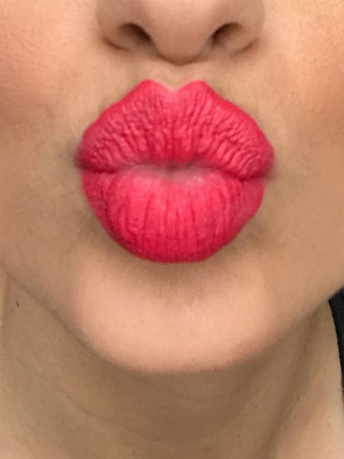 The new Art Stick Liquid Lip formula is creamy, long lasting and pigmented. The applicator tip mimics the shape of a classic lipstick except there’s a teeny hole where the liquid lipstick is dispensed. It’s easy to apply which is always tricky with very pigmented brighter lipsticks. The sticks are squeezable and you can see how much you have left, so you never have to run out. Here is a swatch of the lippies below.