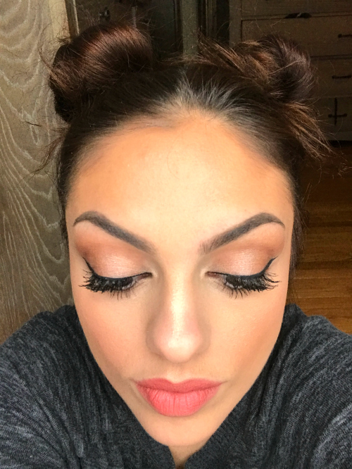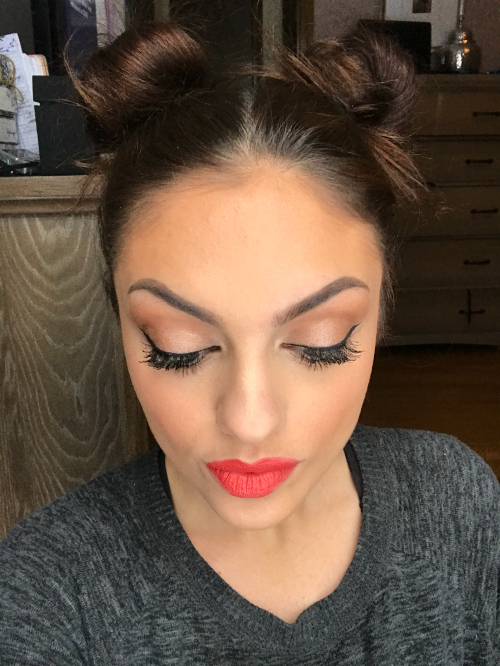 The shade Pink Punch made my teeth practically glow! It’s a blue-based pink and is absolutely beautiful! Don’t mind the space buns lol! It was a snow day so I was bumming around in my pj’s and playing with makeup 🙂