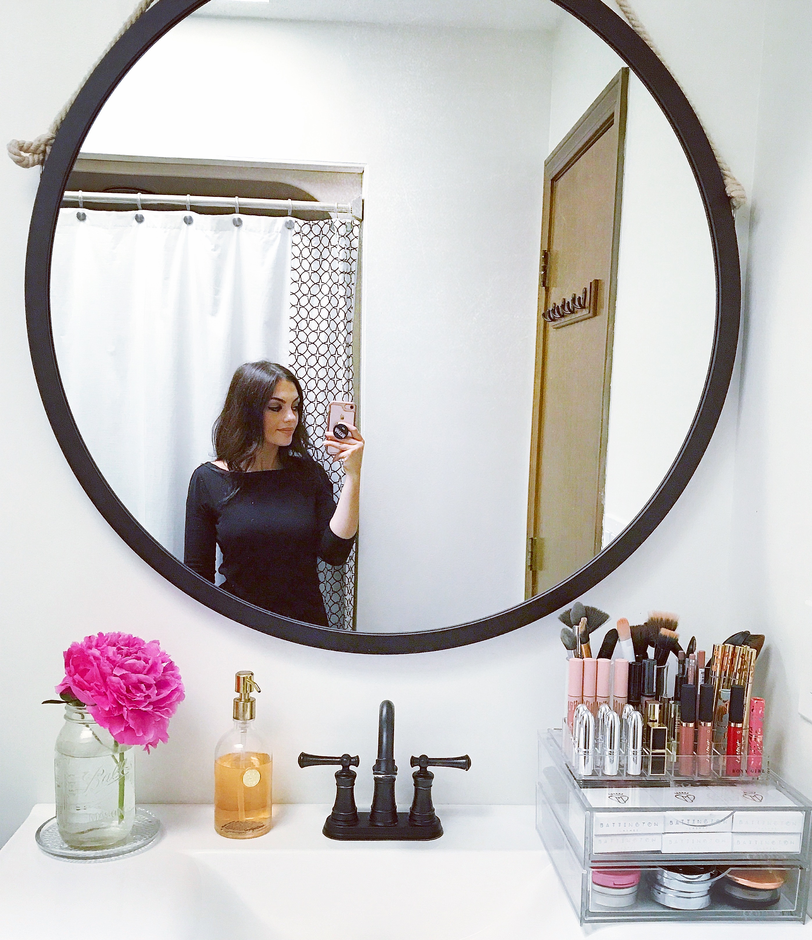 If you’re anything like me, you have 497,677 lipsticks and no place to put them. You should see what the bottom of my purse looks like *rolls eyes*. I have couple of shelves that I store my skincare and makeup I use every day and a small cabinet in my bathroom. Lots of my makeup is in a basket in there. Then there are brushes and tools. Most of the time products end up in my sink too. I’m a freakin mess guys!![]()