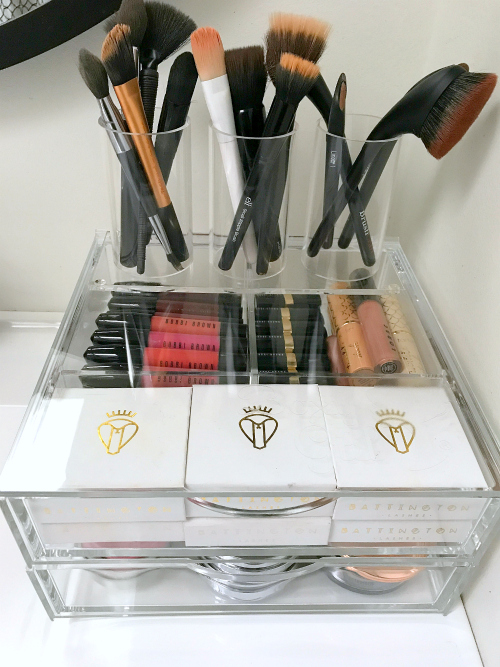 Then for brush storage, three cylinders hold my fave brushes that I use on the daily.