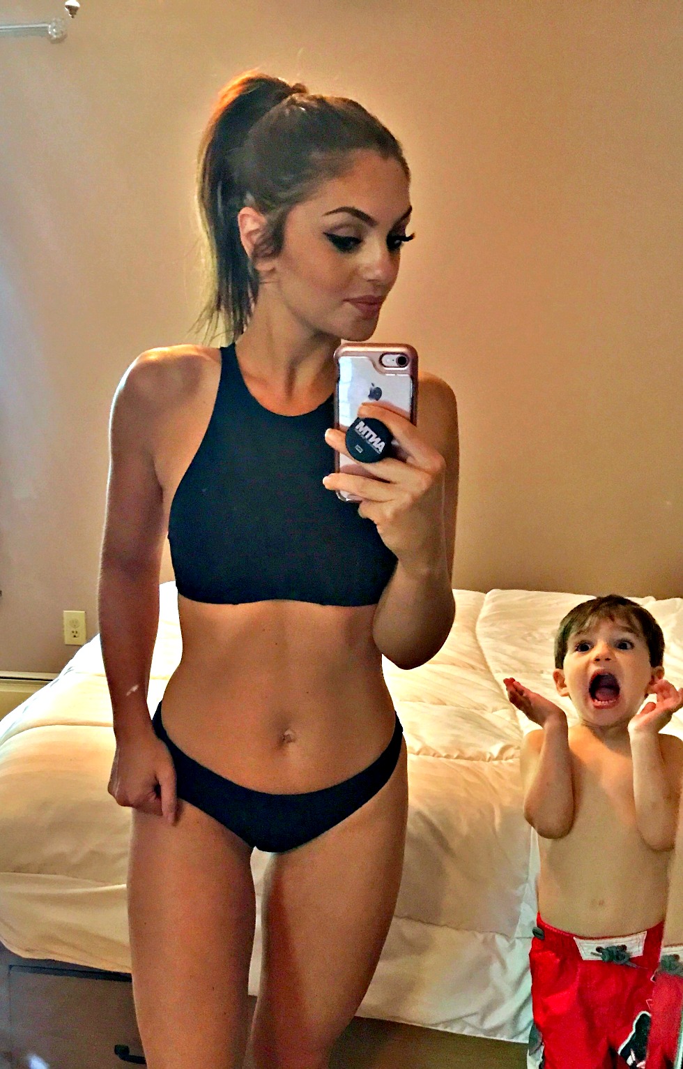 Beautiful drink!! Beautiful bathing suit too? Looks great on you Mindy!!