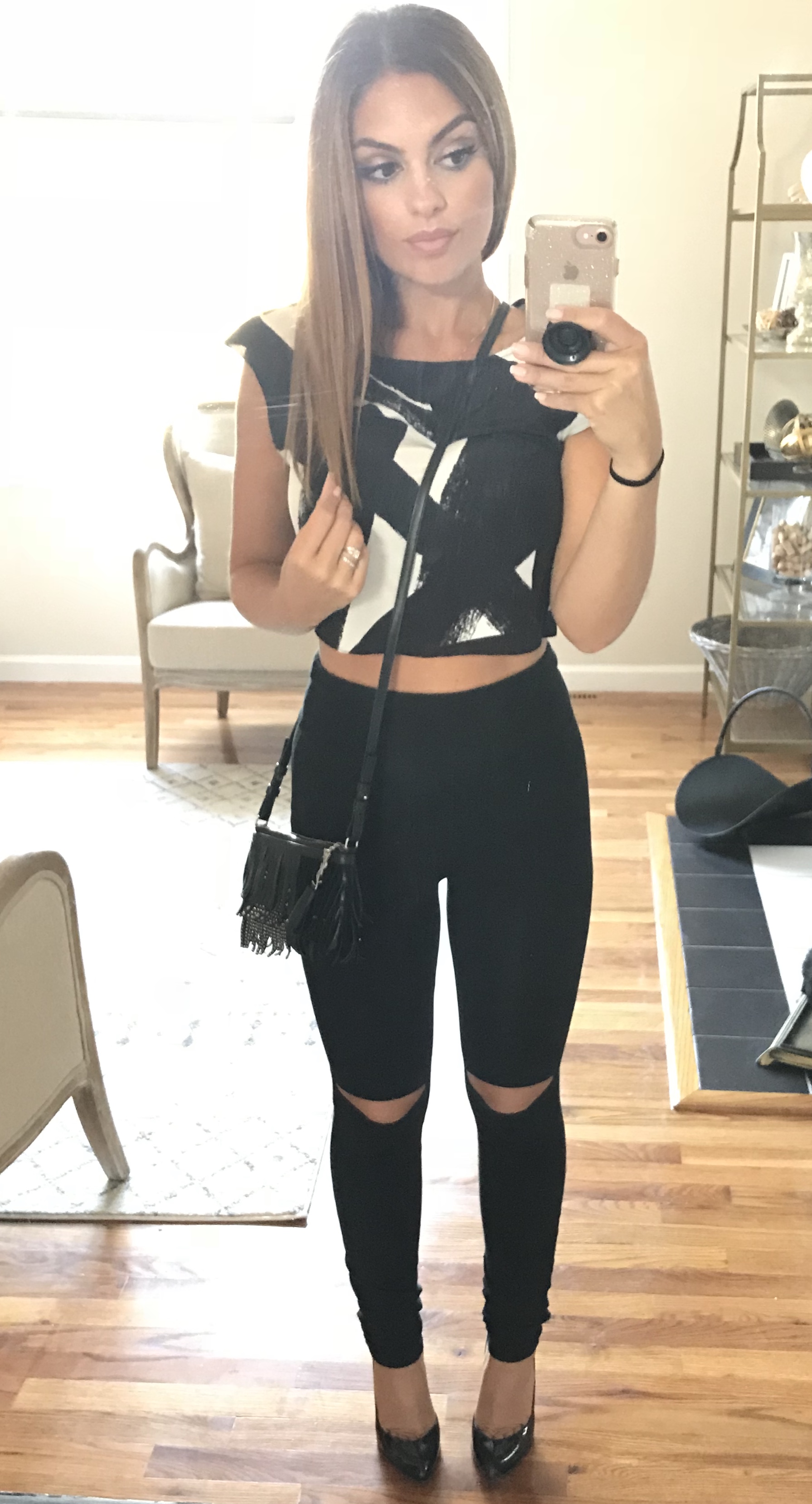 I rocked top with a pair of black split knee leggings, my new studded YSL bag and my favorite black pumps to the Romeo Hunte show for New York Fashion Week.