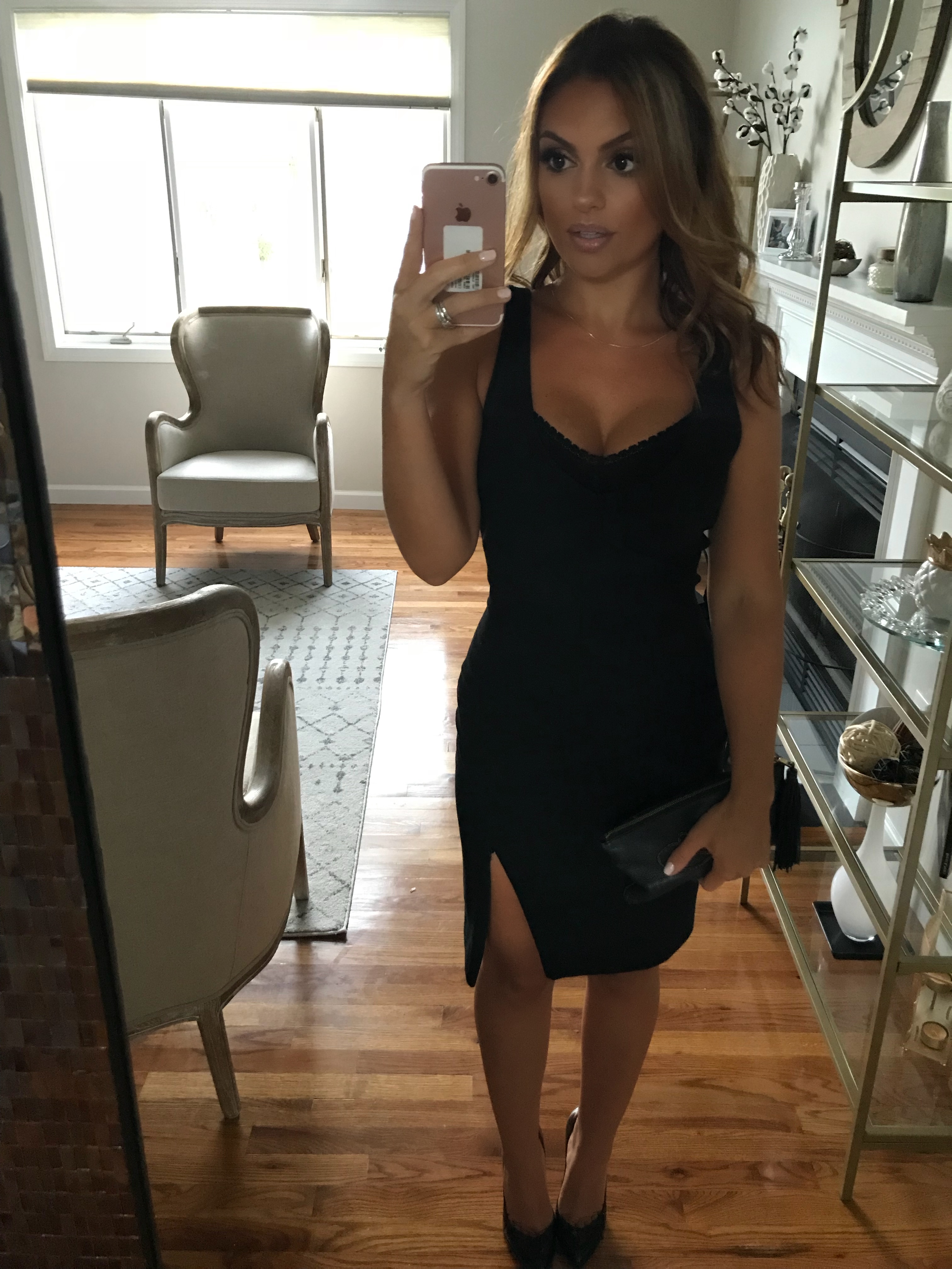 Here’s how I styled the dress when I was heading to my friend’s wedding. My hair was down and styled in loose waves with a smokey eye and nude lip. The slit was unzipped 🙂
